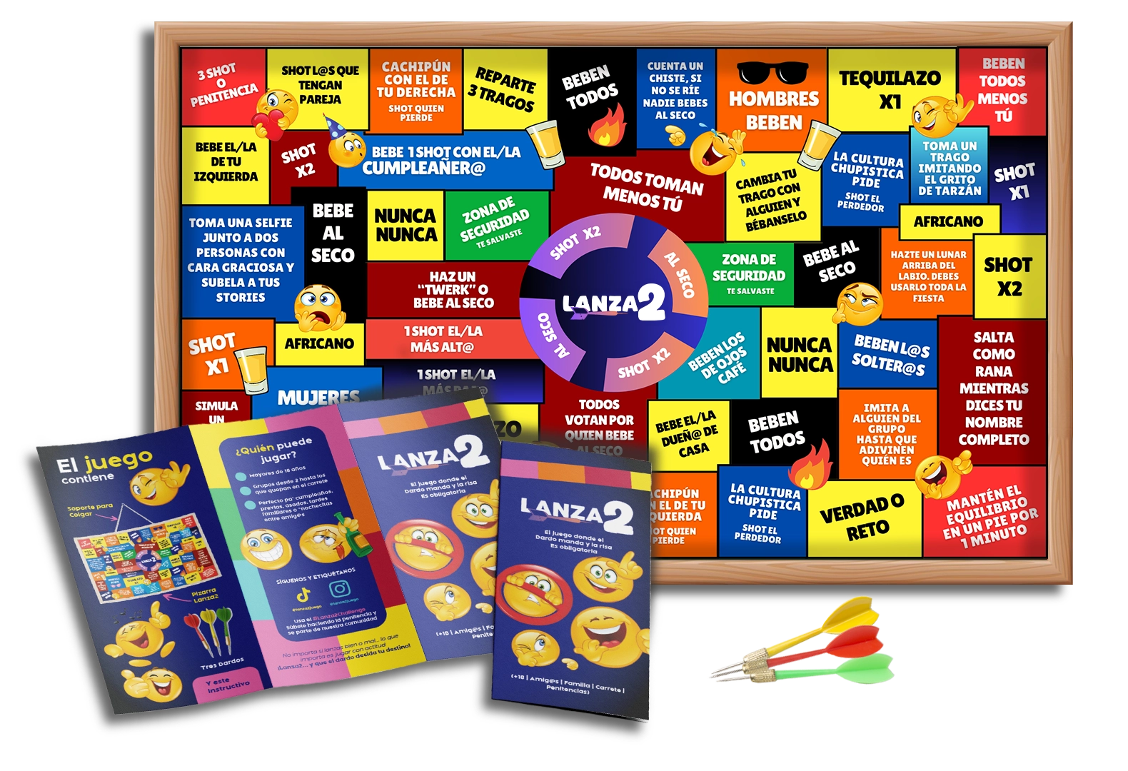 Lanza2 es el juego de dardos para beber más entretenido y caótico que vas a encontrar. Solo necesitas ganas de pasarlo bien, un par de amigos y tu bebida favorita.